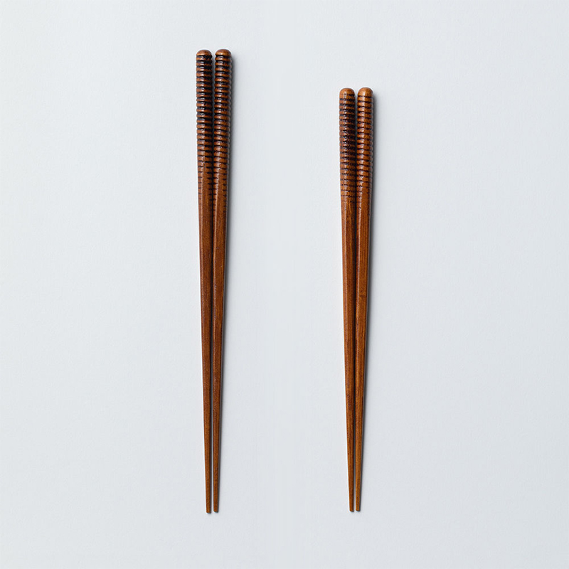 うずまき柄を彫刻した竹のお箸を拭きうるしで仕上げた、見た目も味わい深いお箸です。
