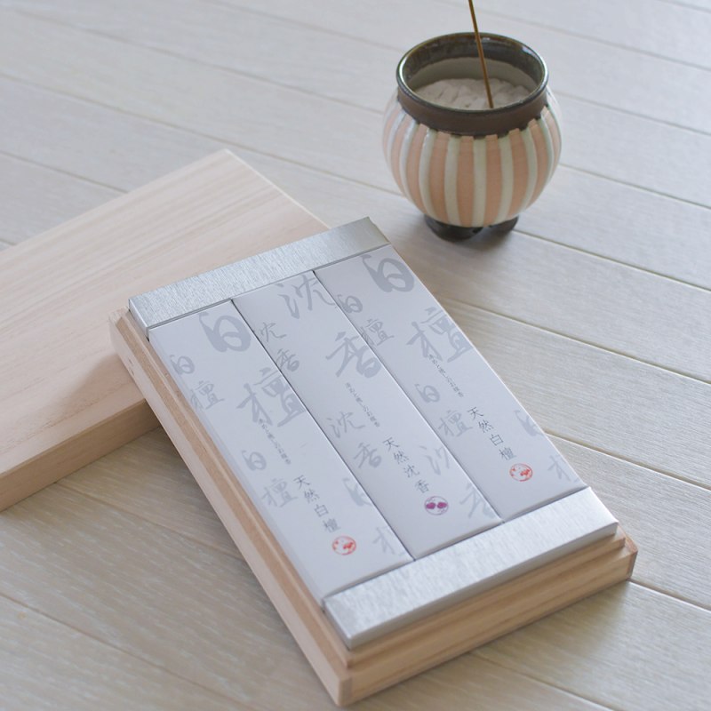 桐箱入り 白檀と沈香の3箱セット ■内容:白檀 2箱 沈香 1箱 その製品や理念について >
