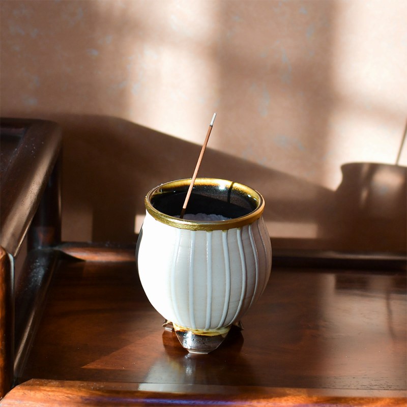 縞香炉 金彩 吉野瞬 作品 香炉 磁器 壺型 ツボ 灰入れ 灰壺 線香立て お香立て 仏具