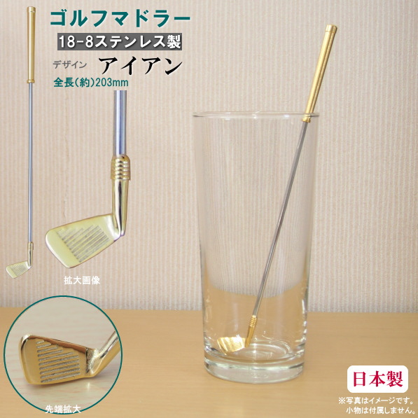 マドラー ハンドル部ゴールドメッキ ゴルフシリーズ アイアン 1本 日本製 燕三条 カクテル用品 ステンレス かっこいい おもしろい ゴルフマドラー かき混ぜ棒