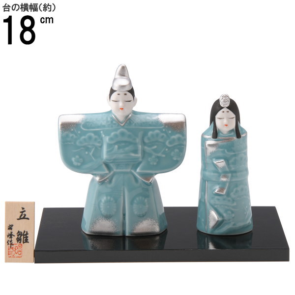●商品サイズ(約)/男雛:高さ120mm、女雛:高さ105mm、飾り台:幅180×奥行き104×高さ9mm