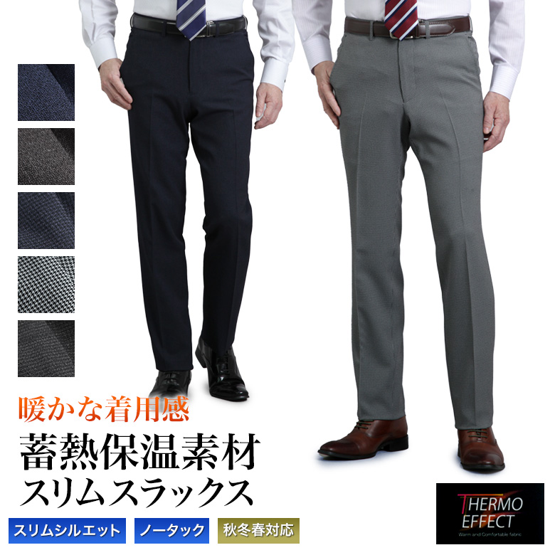 スラックス スリム ウールライク 蓄熱保温THERMO EFFECT(サーモエフォクト)ストレッチ 防シワ メンズ 洗える 暖かい ビジネス カジュアル 【FUN+CODE setup】