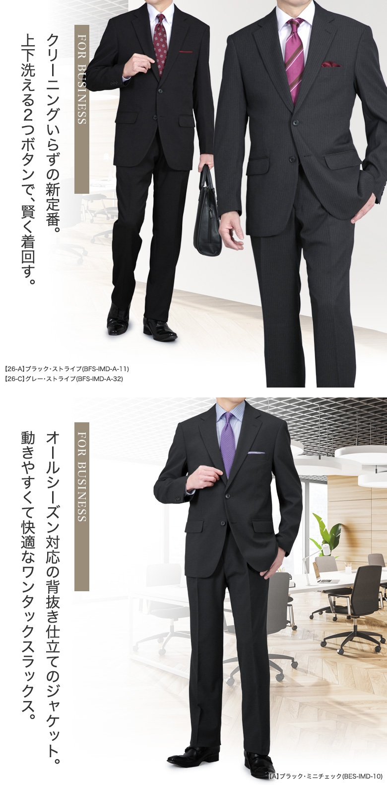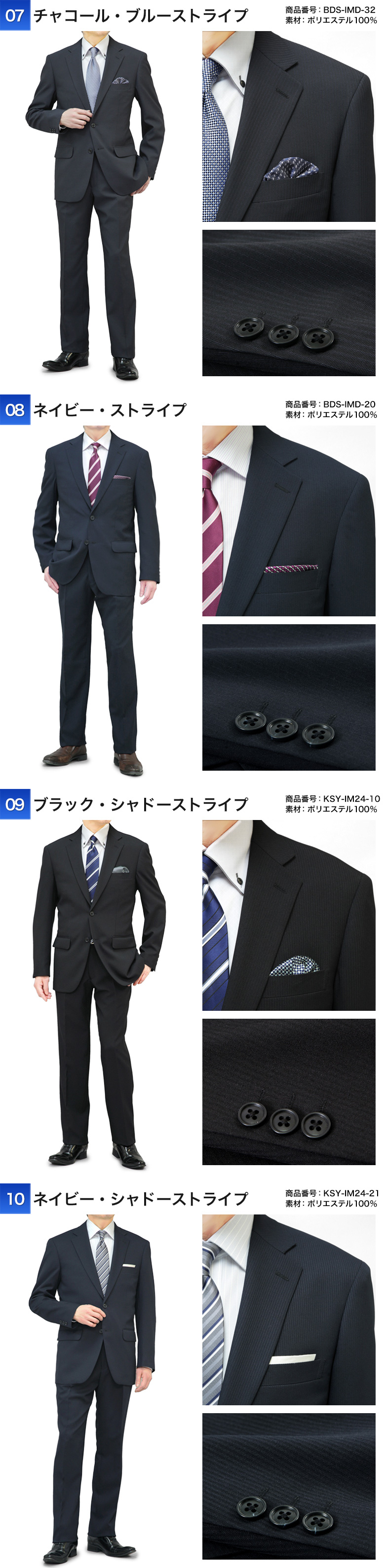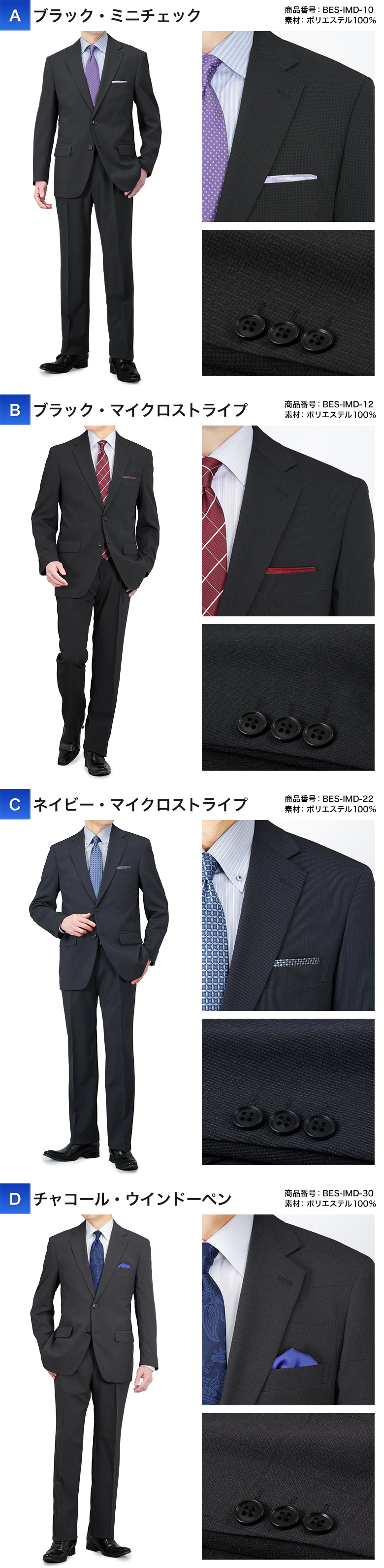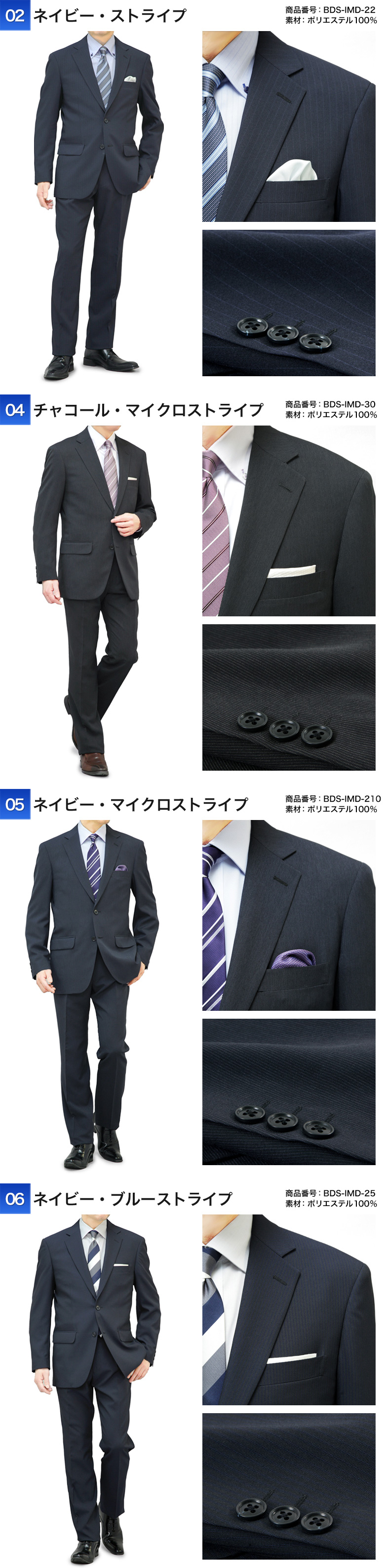 | 【26-A】ブラック・ストライプ(BFS-IMD-A-11) 【26-B】ネイビー・メランジ(BFS-IMD-A-25) 【26-C】グレー・ストライプ(BFS-IMD-A-32) 【A】ブラック・ミニチェック(BES-IMD-10) 【B】ブラック・マイクロストライプ(BES-IMD-12) 【C】ネイビー・マイクロストライプ(BES-IMD-22) 【D】チャコール・ウインドーペン(BES-IMD-30) 【02】ネイビー・ストライプ(BDS-IMD-22) 【04】チャコール・マイクロストライプ(BDS-IMD-30) 【05】ネイビー・マイクロストライプ(BDS-IMD-210) 【06】ネイビー・ブルーストライプ(BDS-IMD-25) 【07】チャコール・ブルーストライプ(BDS-IMD-32) 【08】ネイビー・ストライプ(BDS-IMD-20) 【09】ブラック・シャドーストライプ(KSY-IM24-10) 【10】ネイビー・シャドーストライプ(KSY-IM24-21) ※2026年2月より新たな色柄を追加して発売しております。 |