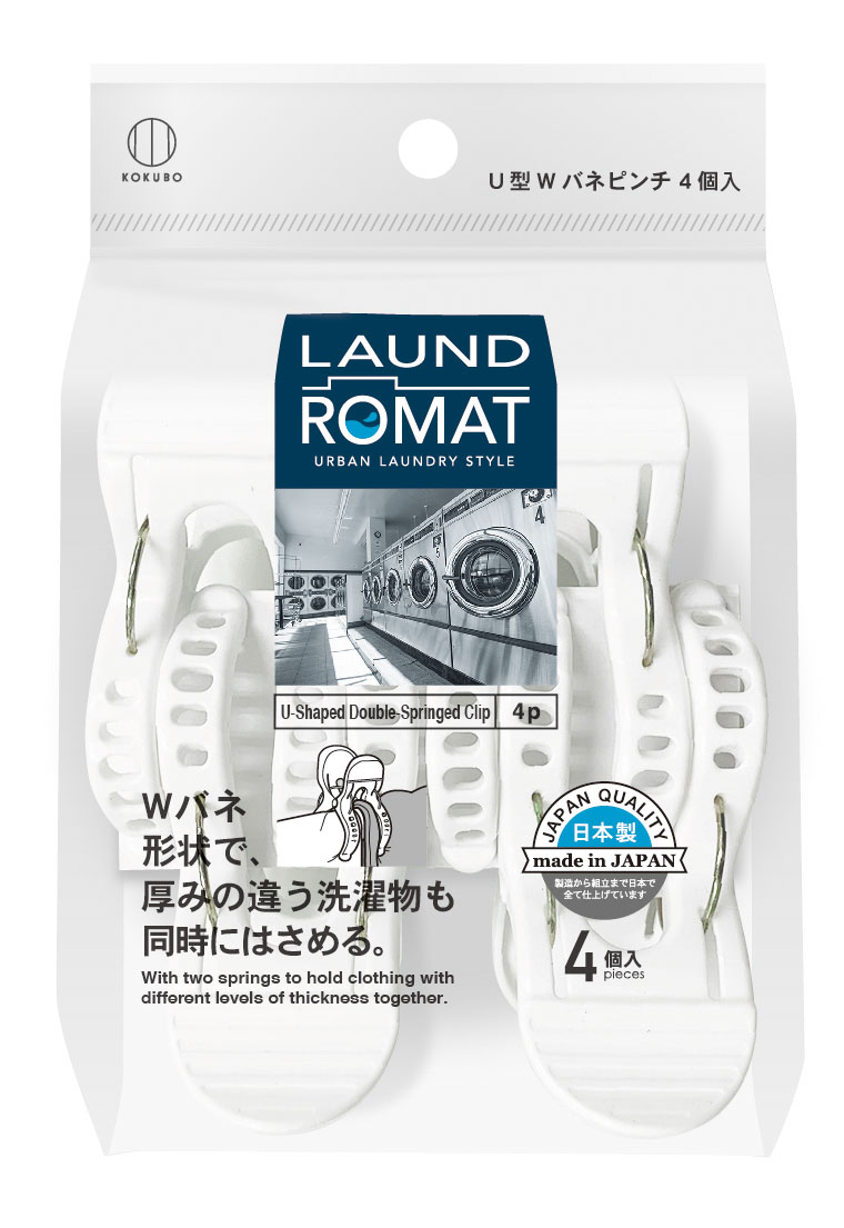 KOKUBO 洗濯バサミ LAUND ROMAT U型Wバネピンチ4個入 洗濯ピンチ 大きい ピンチ