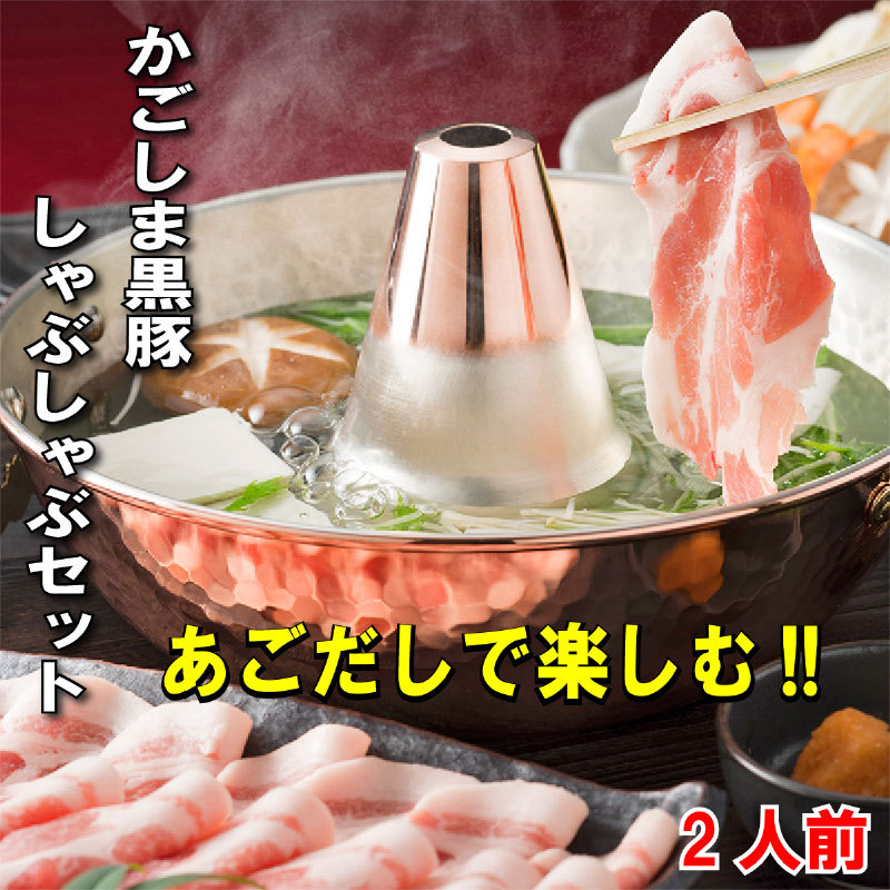 | ■ぽん酢やごまだれ不要 風味豊か 焼あご ダシで食べる かごしま黒豚しゃぶしゃぶセット 2人前 肩ロース こだわり専用出汁付き 贈り物 プレゼント トレイに並べています |