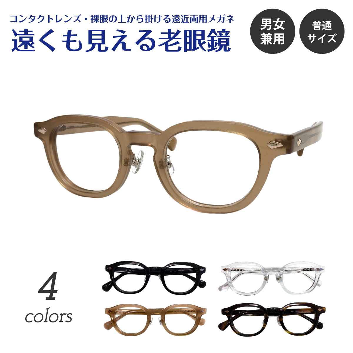 | ■遠くも見える老眼鏡とは コンタクトレンズを使用している方や裸眼の方が、近くも遠くも快適に見ることができるよう商品化した遠近両用メガネです。 レンズの上部が度なしゾーン、下部は老眼ゾーンに分かれていて、視線を動かすことで、近くも遠くもぼやけることなく見ることが可能です。 コンタクトレンズを使用している方や裸眼の方で、スマートフォンの操作や読書など、近くが見えづらい方にオススメです。 掛けはずしの煩わしさから解放されます。 ■品質に自信あり お客様の度数とPD値に合わせて、ご注文を受けてから当店の職人が加工しています。 大量生産品と違い、1本1本丁寧に仕上げております。 メガネ屋として長年培った技術で、お客様にご満足いただけるよう努めています。 ■フレーム 生地厚め(5mm)で重厚感のあるアセテートフレームです。 太めのフレームは、顔にメリハリをつけて引き締めて見せてくれます。 ファッションとしての存在感もあり、今風のおしゃれな雰囲気に。 |