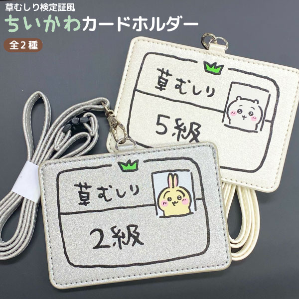 |おでかけ|通学|通勤|定期入れ|ICカード|IDケース|カードケース|パスケース|カード入れ|カードホルダー|安全ストラップ|ストラップ付き|ケース|ちいかわ|うさぎ|草むしり|草むしり検定|検定証|シルバー|ホワイト|かわいい|キャラクターグッズ|