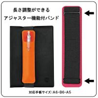 ・長さが調整できて、幅広い手帳サイズに装着することが可能なアジャスター機能付きバンド。ペンケース裏面のバンド部分に、長さ調整できるアジャスターが付いています。
