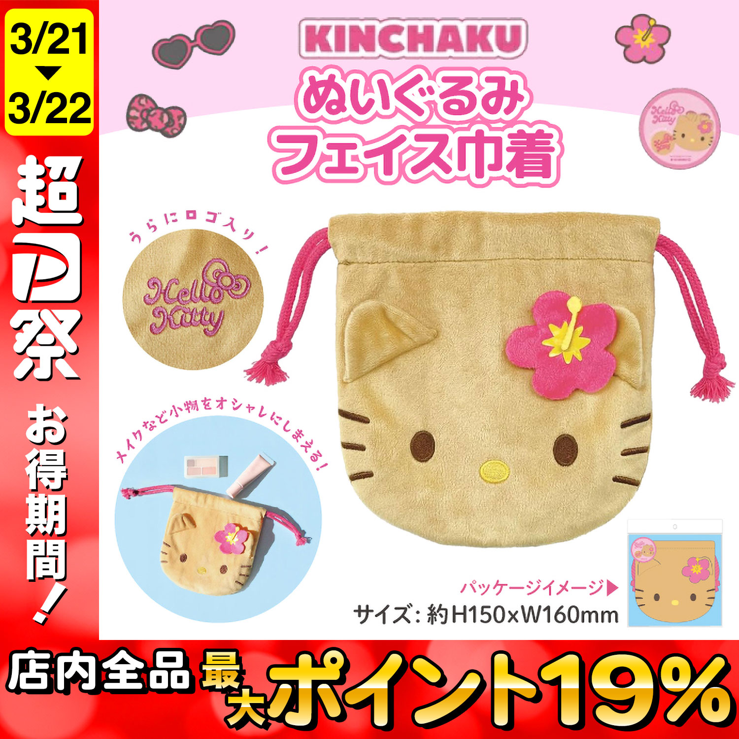 超Pay最大P19% ハローキティ 日焼けシリーズ フェイス型 巾着袋 1個 日焼け ギャル ハイビスカス 小物入れ サンリオ キティ 全1種
