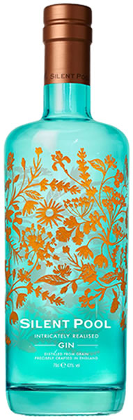サイレントプール ジンは小麦由来のベーススピリッツ、24種類のボタニカル、そして石灰層で濾過され青く澄んだ湧き水を満々と湛えるサイレントプール湖の水を使用したロンドンドライジンです。