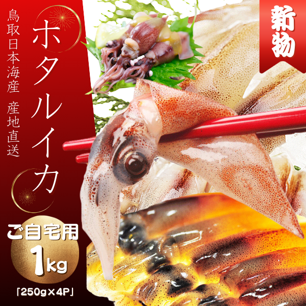 ホタルイカ 生 ほたるいか 2026年度 ご自宅用 訳あり -60℃急速冷凍 (大きさ不揃い)約1kg (250g×4パック) 2セットご購入で1セット増量 送料無料
