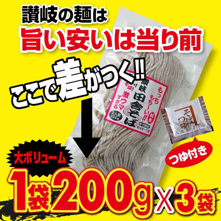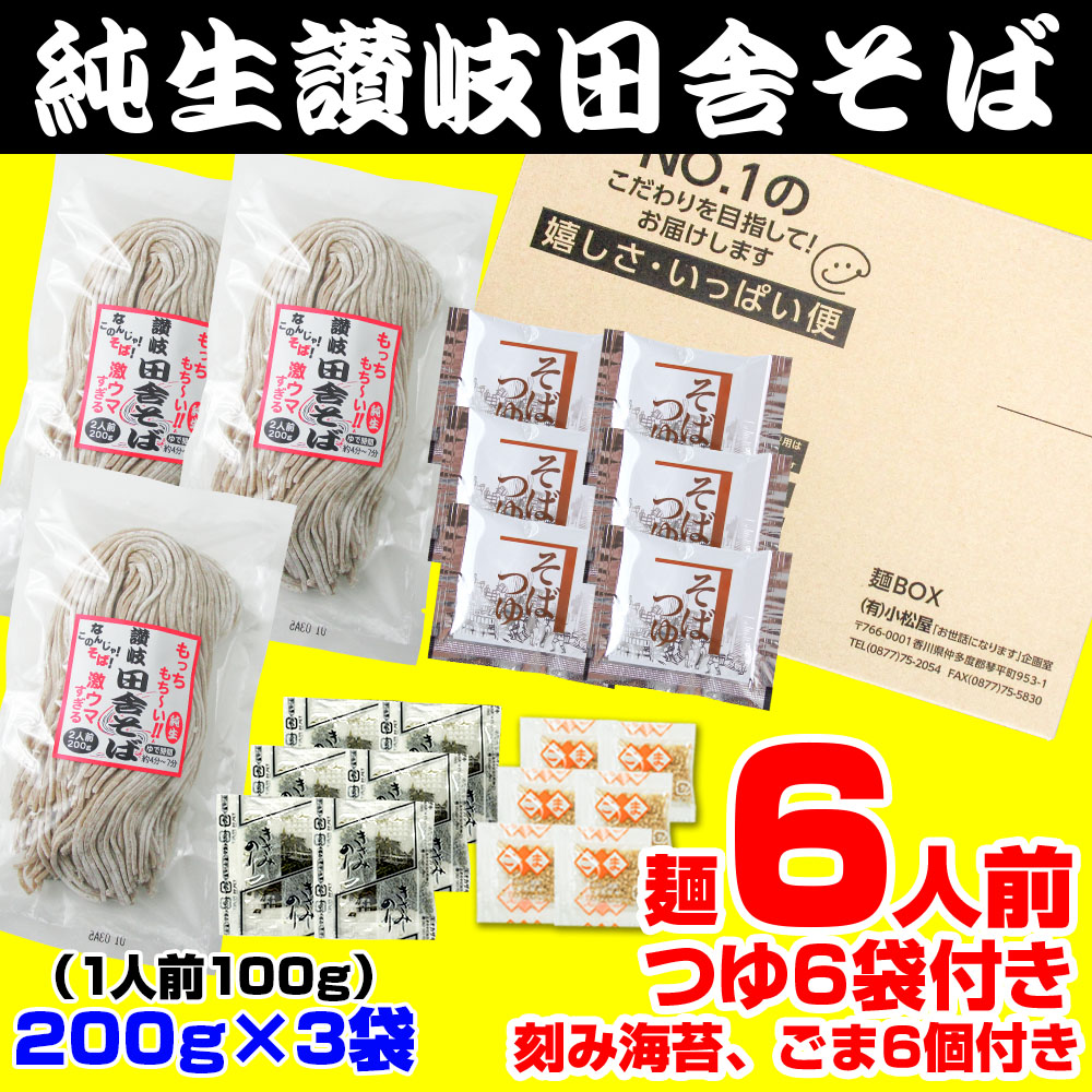 純生 讃岐田舎 そば 6人前 つゆ、刻み海苔、胡麻 各6袋付き 200g×3袋 生そば 食品 得トクセール 特産品 激安 生麺 ポイント利用 お試し商品