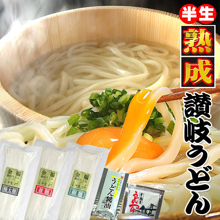半生完熟3種讃岐うどんつゆ付き(極太麺・並麺・細麺)750g