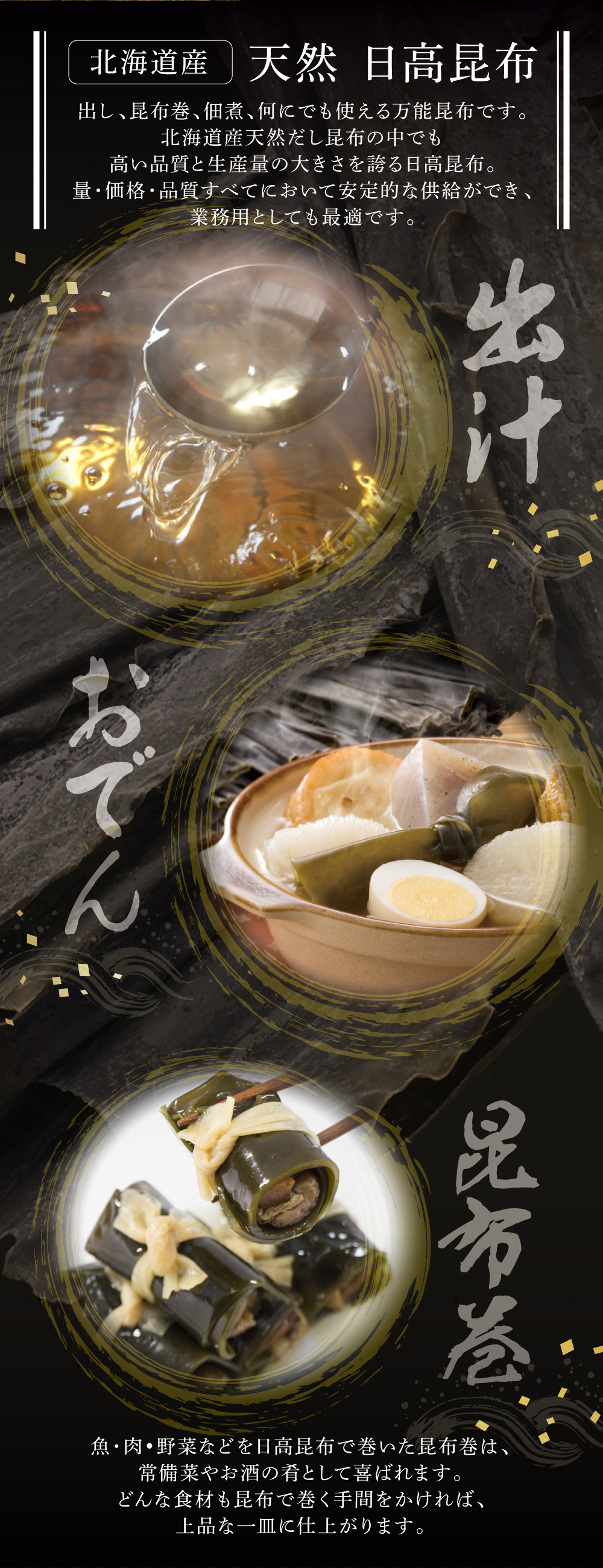 出し・昆布巻き・佃煮昆布・昆布水など万能にお使いいただけます。