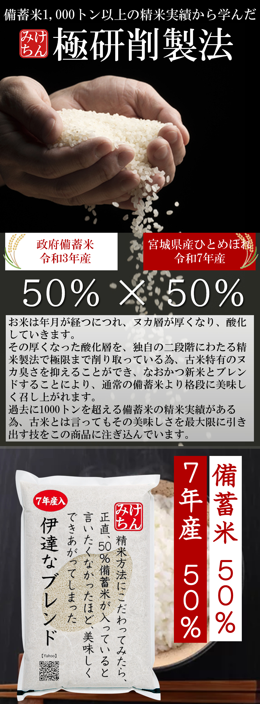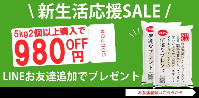 【2個以上購入で980円OFF!1個あたり3,080円】7年産宮城ひとめぼれ 5割 + 備蓄米 5割 ブレンド 5kg 新生活応援セール 白米 お米 米 精白米 政宗 伊達なブレンド