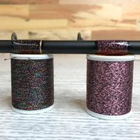 「ラメスレッド」はメタリックスレッドと違い、ブラックスレッドをベースメタリックフィルムを巻き合わせた一味違ったメタリック系スレッドです。