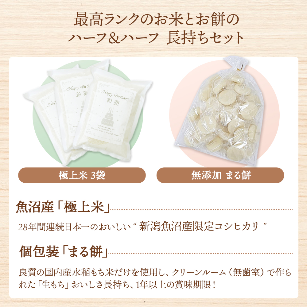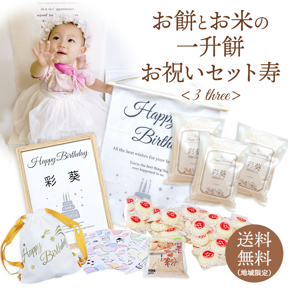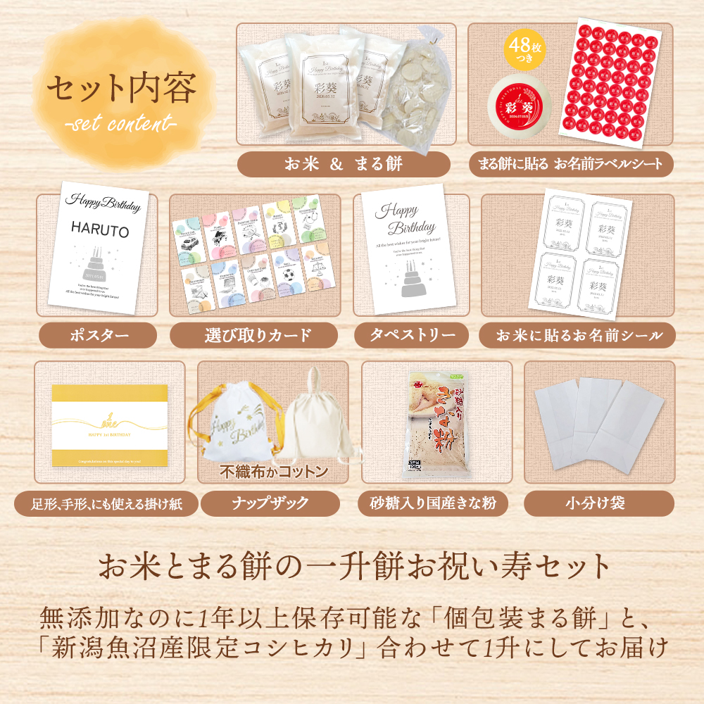 一升餅 一升米 名前入り 1歳 誕生日 お祝い ギフト 男の子 女の子 無添加 長期保存 11点 セット 一生餅 リュック 選び取り カード ハーフ&ハーフ 寿 [3 three]