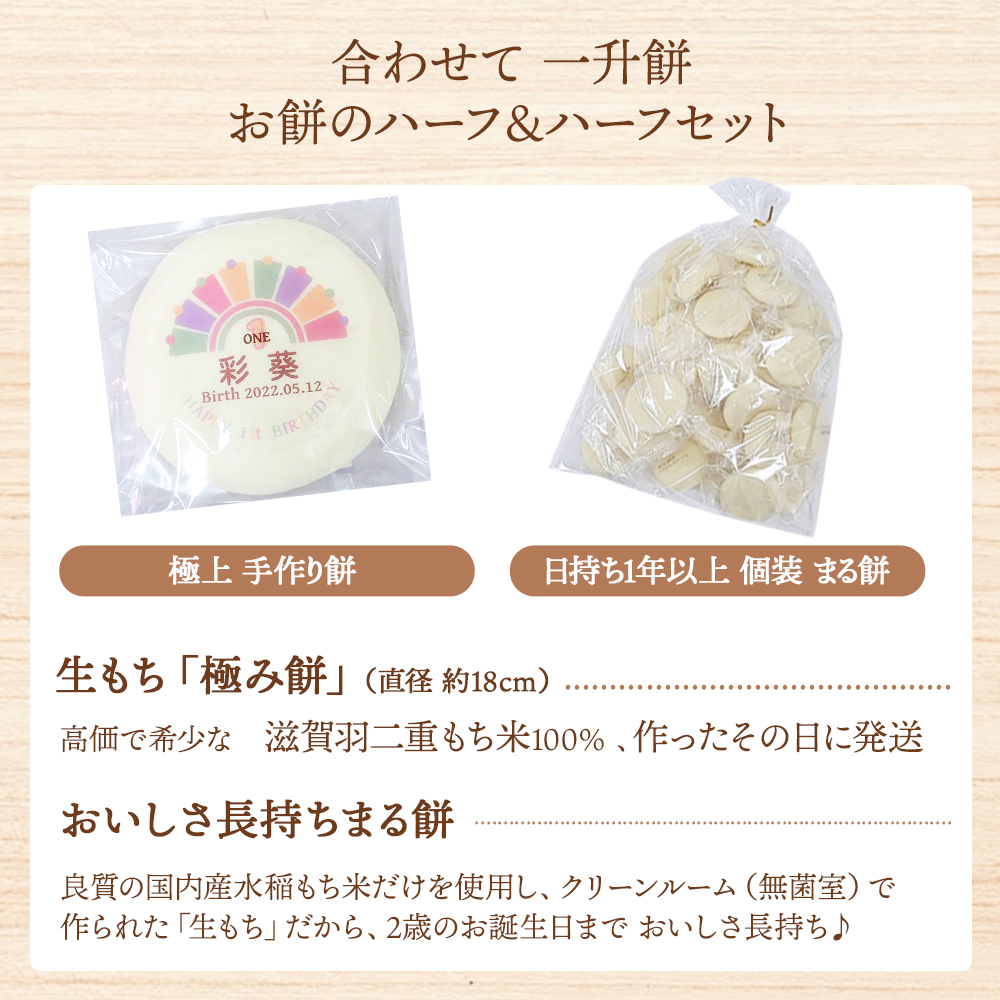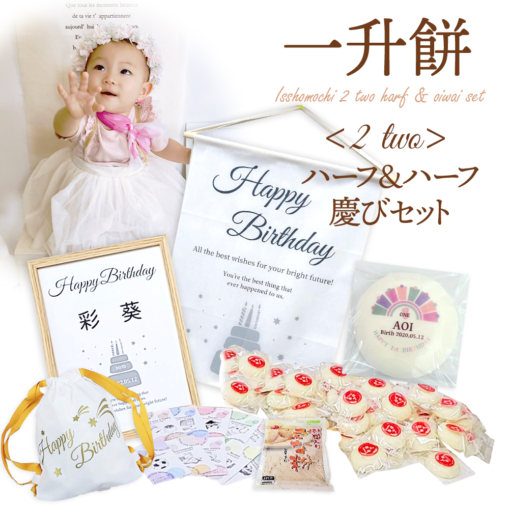 一升餅 1歳 誕生日 お祝い ギフト セット 無添加 小分け 男の子 女の子 一生餅 名前入り リュック 選び取り 地域限定 送料無料 ハーフ&ハーフ 慶び[2 two]