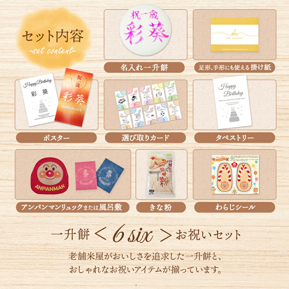 一升餅 1歳 誕生日 お祝い 一生餅 ギフト セット 手書き 名入れ 男の子 女の子 小分け アンパンマン リュック 風呂敷 選びとりカード わらじ 送料無料
