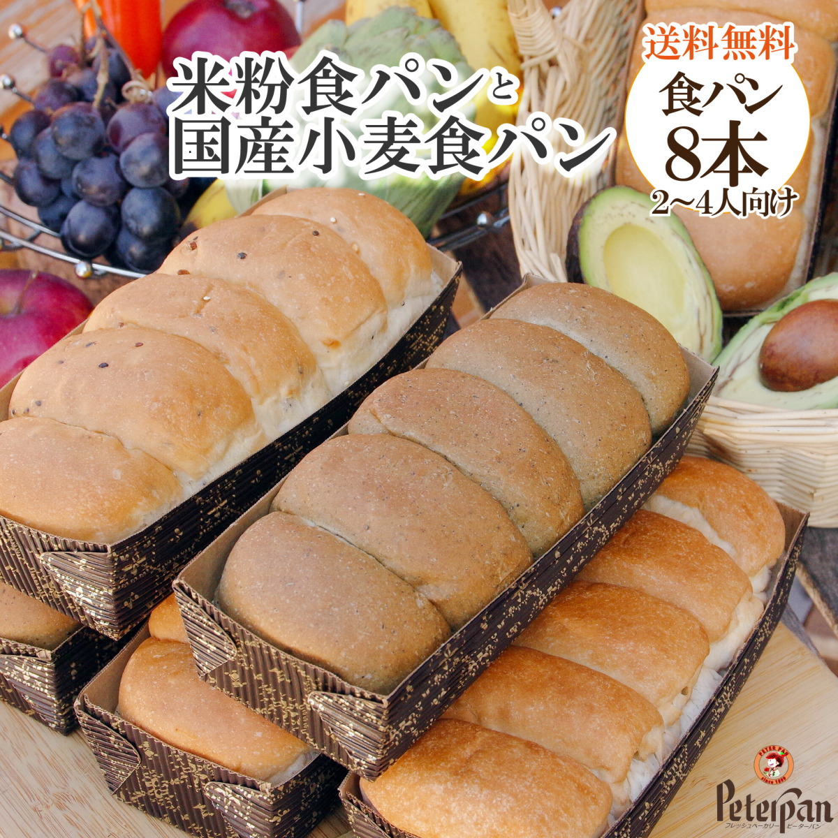 | 明治32年創業、120年続く瀬戸内の老舗ベーカリーピーターパンのオリジナル商品 米粉食パン1種と国産小麦食パン3種のセット 各2本づつで 計8本 こちらのセットは、当社が自信を持ってオススメする「国産米粉食パン」1種類と「国産小麦食パン」3種類の詰め合わせです。 4種類×2セットですので、合計8本です。 【セット内容】 画像のロングライフパン4種類×各2本セット お得なパッケージです。 ・国産米粉の米太郎食パン ×2個 (フードアクションニッポンアワード優秀賞受賞) ・国産小麦のよもぎ食パン ×2個 ・国産小麦の玄米食パン ×2個 ・国産小麦の五穀食パン ×2個 当店のロングライフパンは、都圏の高級百貨店デパートや、自然派食品店にも採用されている実力派商品です。 全て当社オリジナル開発の包装技術で包んでいますので、常温未開封で約1か月日持ちいたします。 1か月分まとめてご注文にいただく方にご好評いただいております。 ▼国産米粉の米太郎食パン▼ |