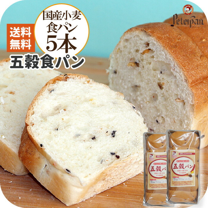 国産小麦で作ったおいしい五穀食パンを5本送料無料でお届けいたします。