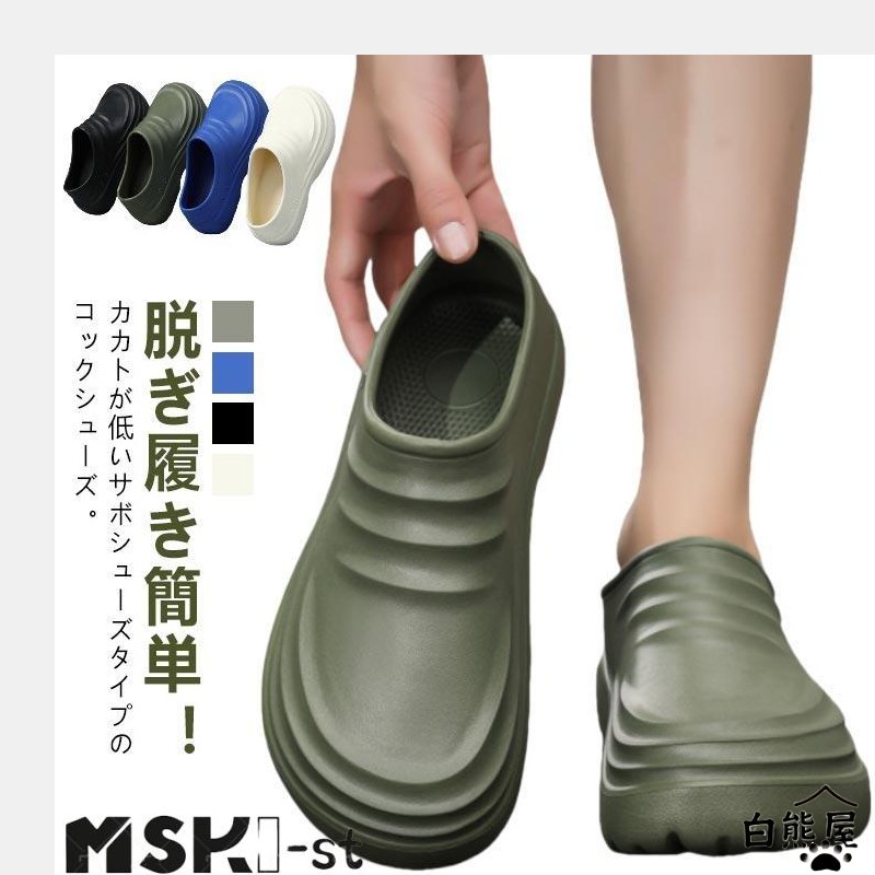 厚底 コックシューズ 黒 コックサンダル メンズ 耐油 白 防水 サボ サンダル スリッポン 男性 厨房シューズ 耐油性 黒 キッチンシューズ 飲食店