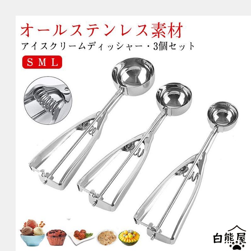 アイスクリームディッシャー 3個セット S M L ステンレス アイスクリームスプーン アイススクープ 業務用 飲食店 スプーン 小さい 料理用 キッ