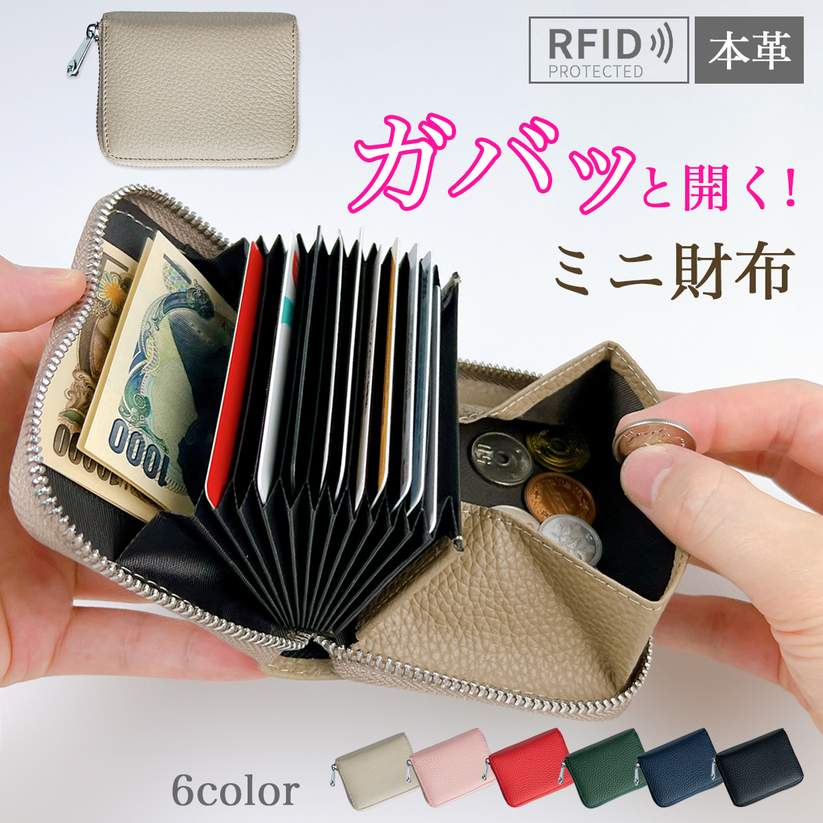 ミニウォレット レディース 二つ折り財布 財布 ミニ財布 本革 小銭入れ コンパクト 使いやすい 大容量