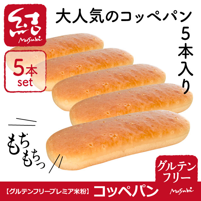 米粉パン「コッペパン」5本入り|小麦・卵・乳・増粘剤不使用|グルテンフリー・プラントベース・国産米100%