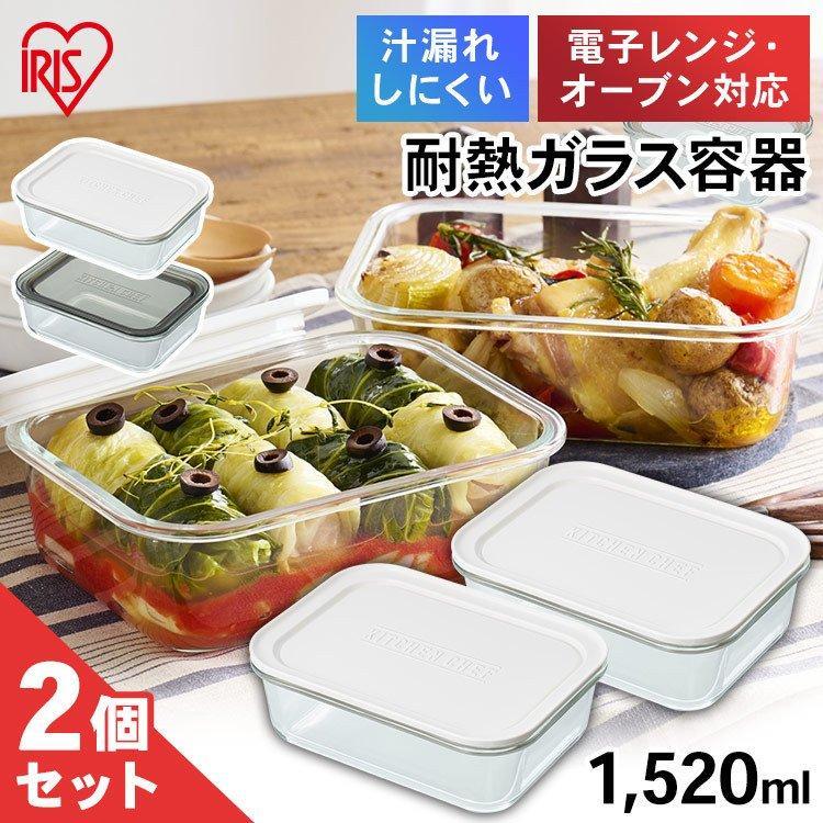 保存容器 耐熱ガラス 耐熱ガラス容器 2点セット 蓋付き フタ クリア 透明 アイリスオーヤマ TGS-2S