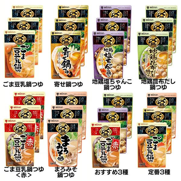 【定番三種セット】ごま豆乳鍋つゆ、寄せ鍋つゆ、まろみそ鍋つゆの3種セットです。