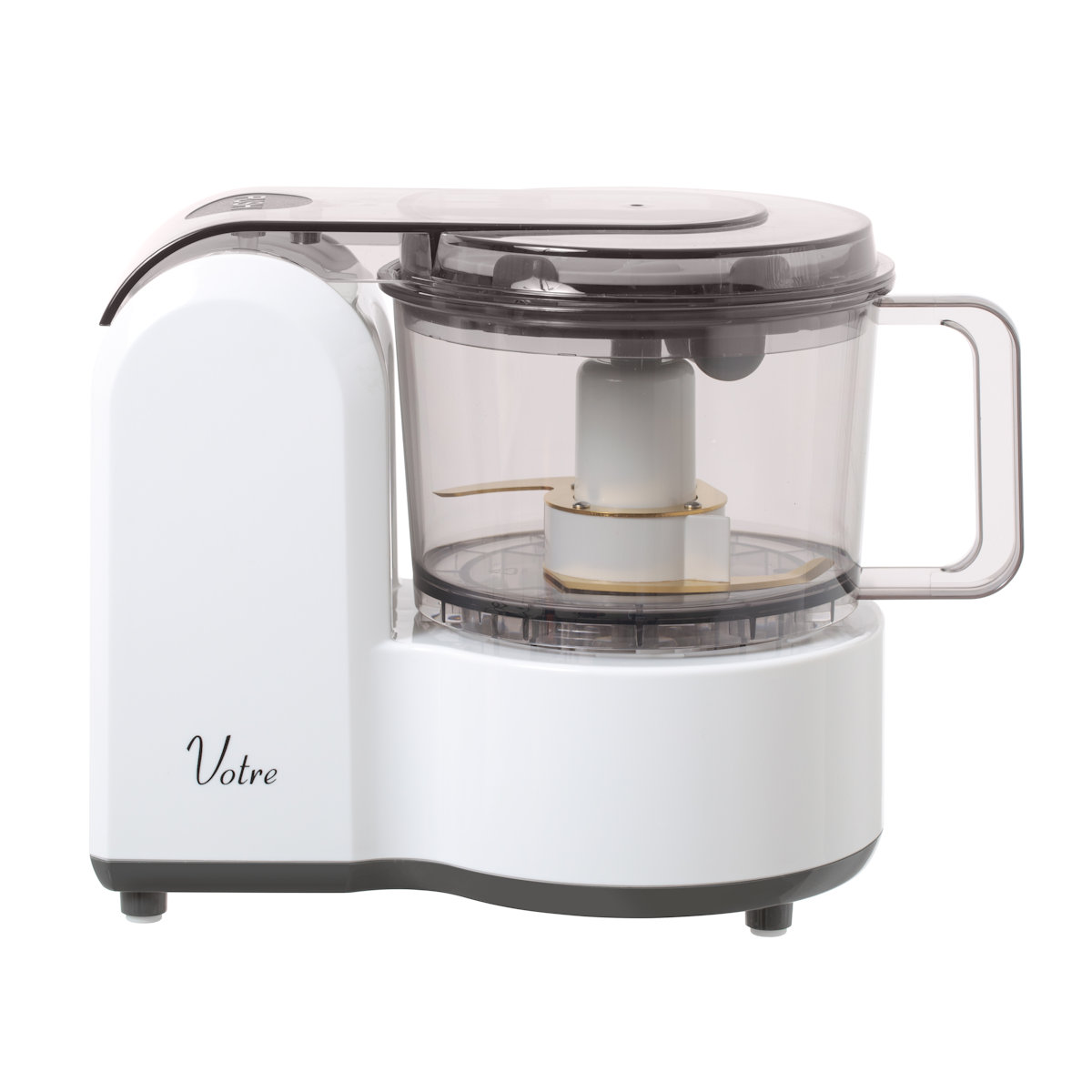 ・電源:AC100V(50/60Hz)・消費電力:200W・定格時間:3分間以内(3分間使用ごとに20分間以上休止)・最大調理容量:500g・電源コード長さ:約1.2m・回転数:約2500回/分・安全装置:温度ヒューズ、安全スイッチ・セット内容:本体、容器、きざみカッター、おろしプレート、ふた、ヘラ ※容器は食洗器対応