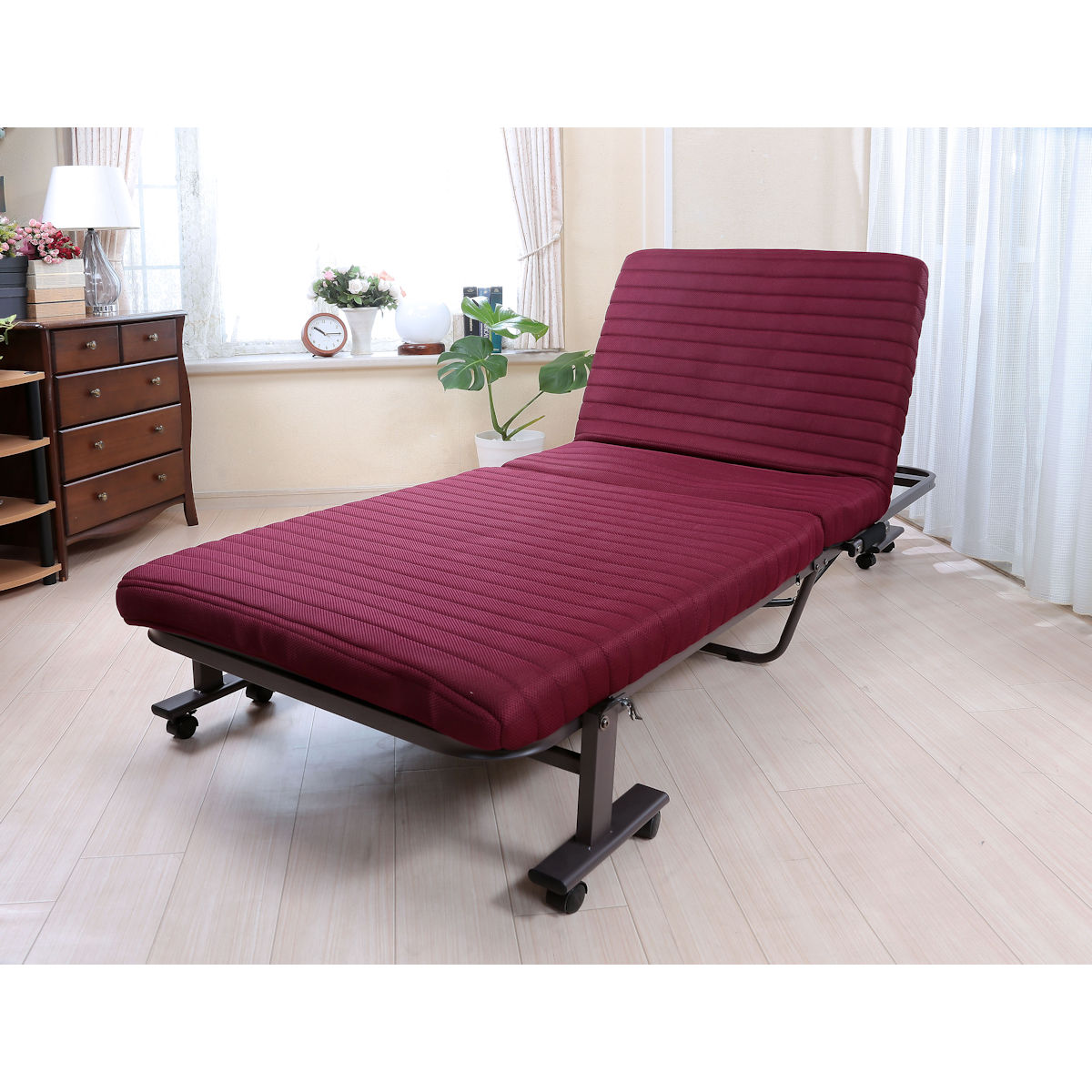 谷村実業 ふかふかな寝心地折りたたみベッド ワインレッド シングル