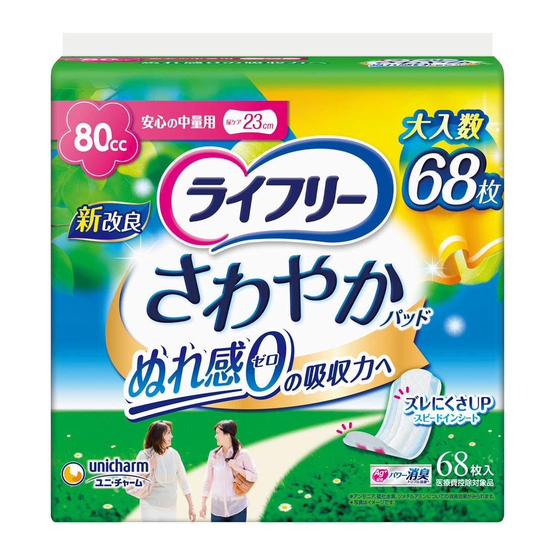 ユニ・チャーム ライフリー さわやかパッド あんしんの中量用 80cc ウルトラジャンボ 68枚入り