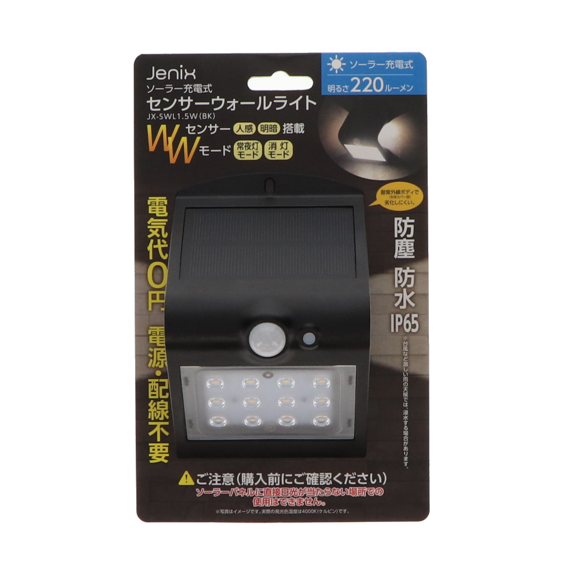 Jenix(ジェニックス) ソーラーセンサーウォールライト 220lm 黒