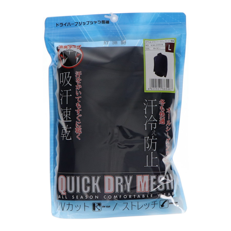 コメリ ドライハーフジップシャツ 長袖 ネイビー L