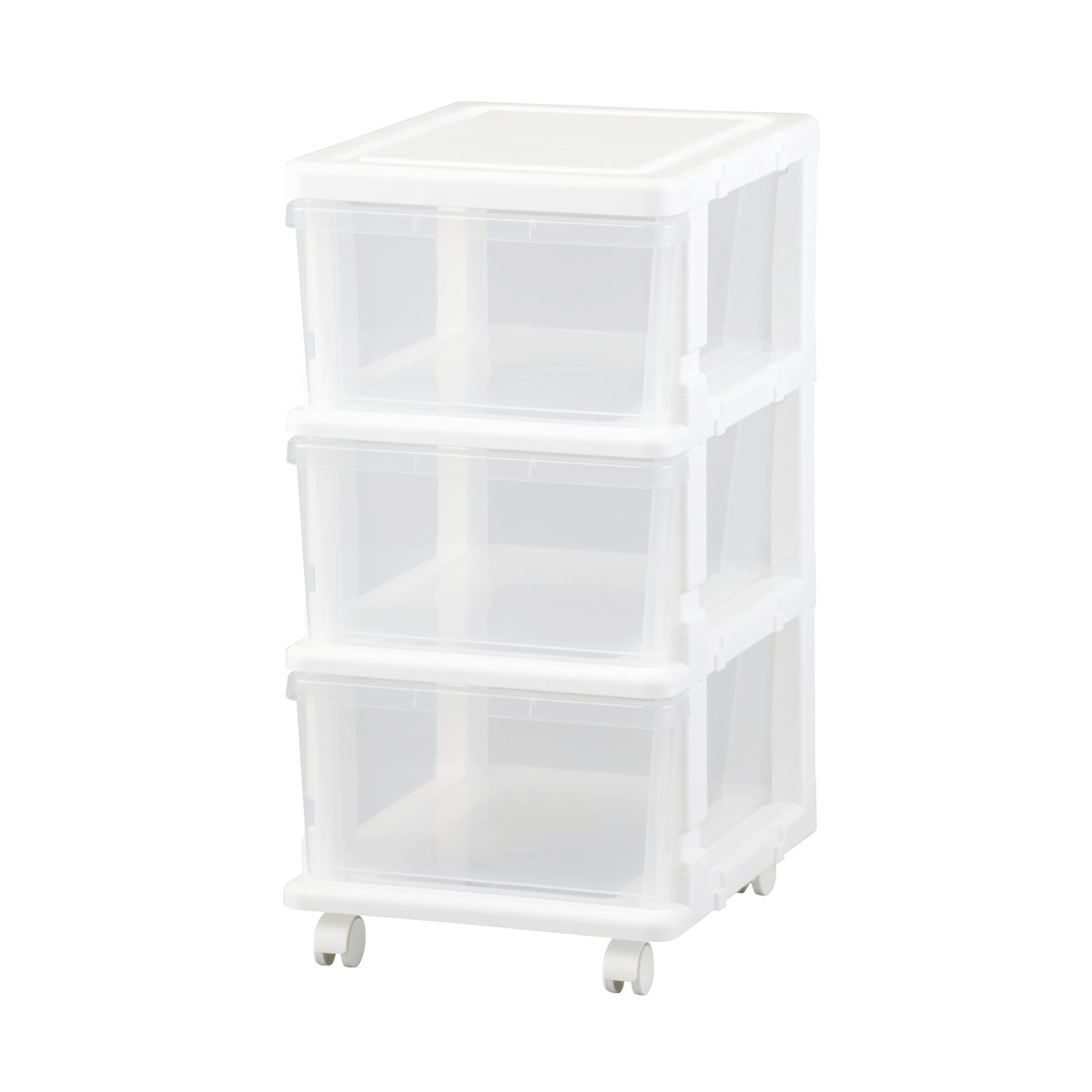 アテーナライフ 連結できるスリムチェスト3段 ホワイトクリア 4個セット