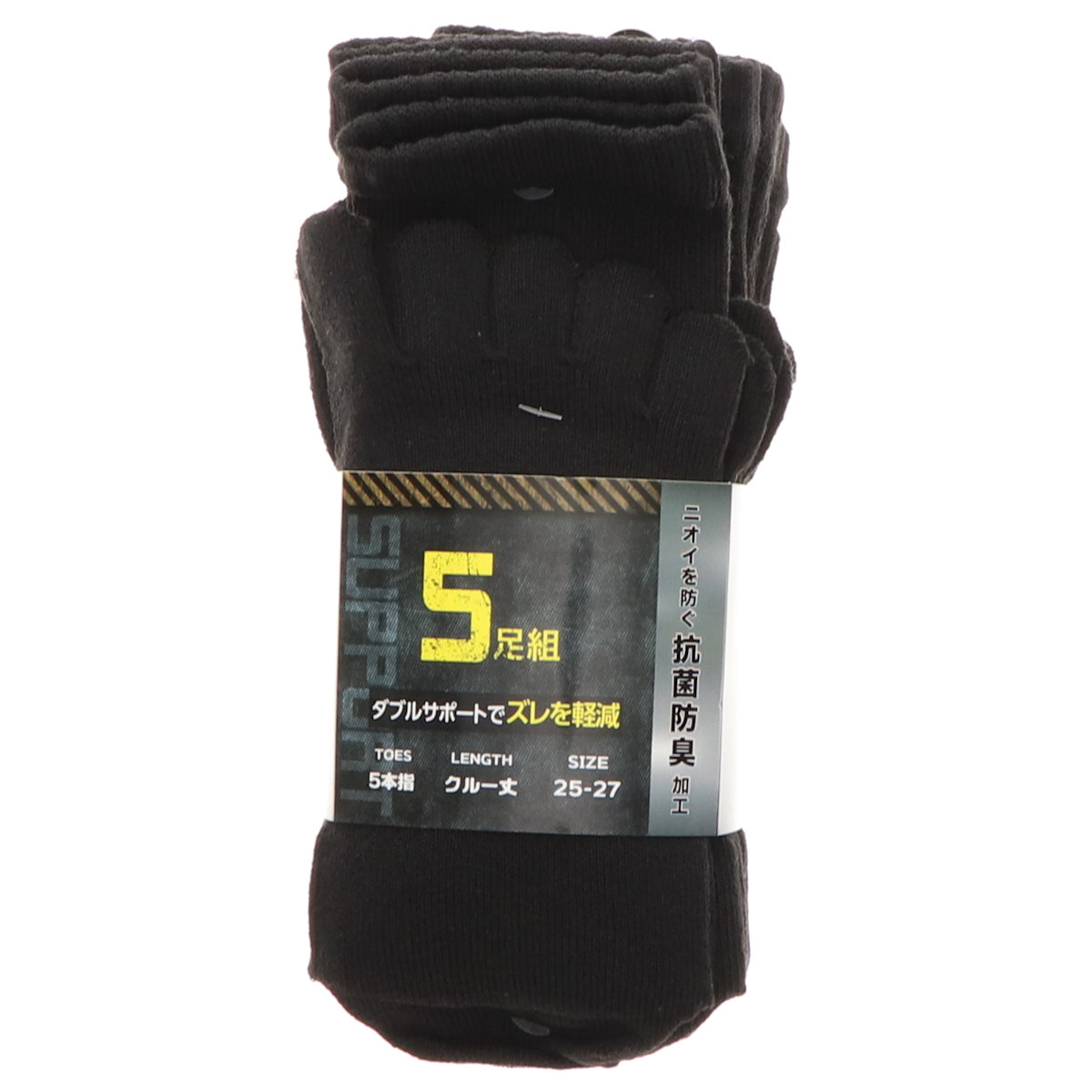 コメリ サポートソックス 5本指 ブラック 25−27cm 5足組
