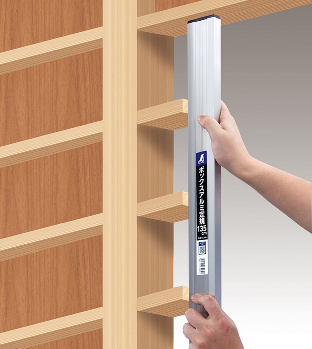 窓枠・ドア枠・壁・床などに当てて真直具合を確認できる定規です。