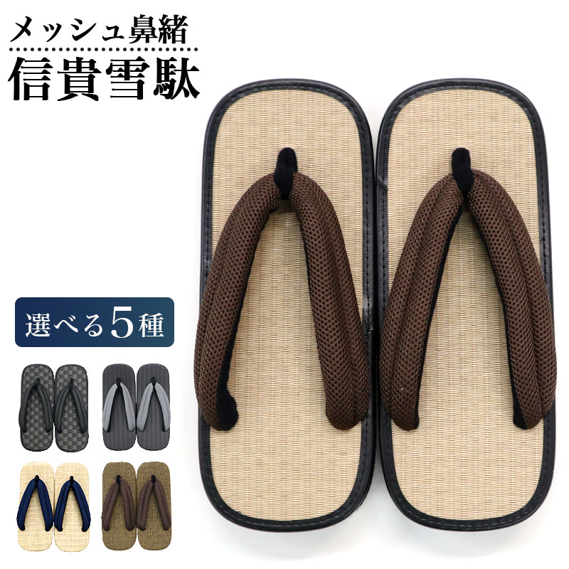 | 鼻緒 | メッシュ | 墨黒、茶色、紺、灰色4色からお選びいただけます。 |