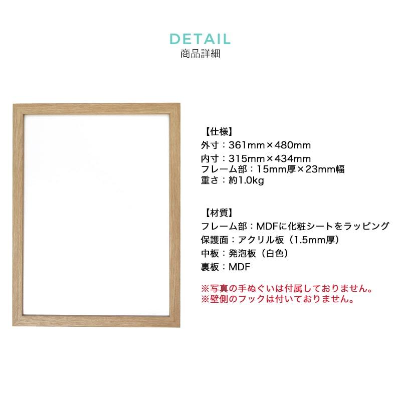 <内容> 手ぬぐい額 ハーフサイズ コンパクト(木目高級タイプ / カラータイプ) <仕様> 外寸:361mm×480mm 内寸:315mm×434mm フレーム部:15mm厚×23mm幅 ※こちらは加工等した手ぬぐいはご使用いただけません。端縫い加工、タオル生地のものは対応致しかねます。ご不安な方はカスタマーまでご連絡くださいませ。 重さ:約1.0kg <品質表示> フレーム部:MDFに化粧シートをラッピング 保護面:アクリル板(1.5mm厚) 中板:発泡板(白色) 裏板:MDF板 日本製 |