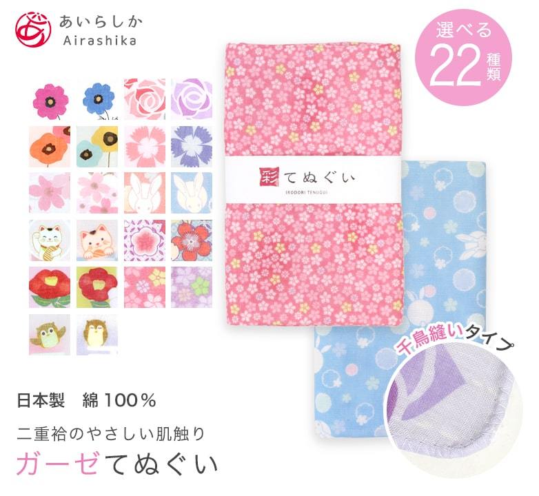 <内容> 二重袷ガーゼ(端:千鳥掛け縫い) <仕様> 約88×33cm <品質表示> 綿100% 日本製 <デザイン> コスモス / バラ / ポピー / ナデシコ / サクラ / 小紋ウサギ / 招き猫 / 辻が花 / ツバキ / 小花 / フクロウ |