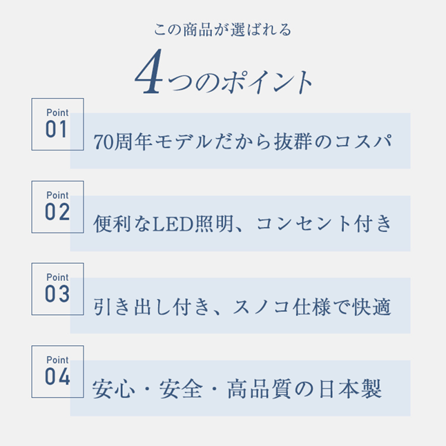 安心・安全・高品質の日本製です。