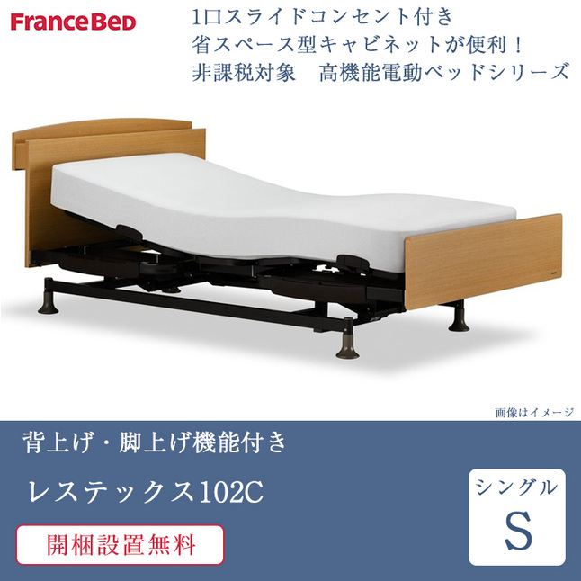 非課税 正規品 フランスベッド 電動ベッド 2モーター シングル レステックス102C マイクロRX-DLX | 電動リクライニングベッド 介護ベッド コンセント 棚付き