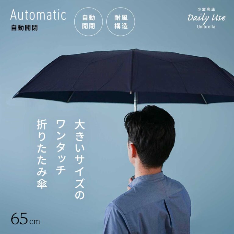 ボタンを押すと自動で傘が開閉する機能的な折りたたみ傘です。