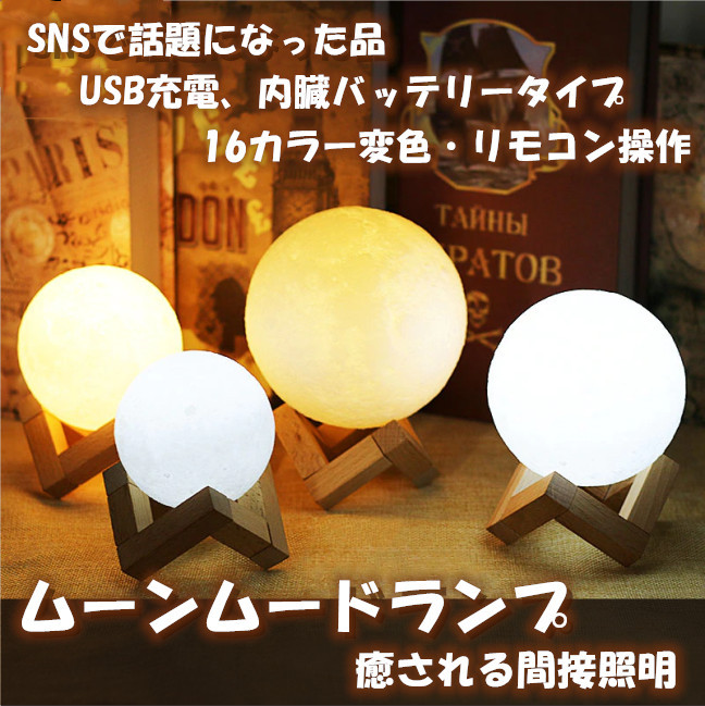 ムーンムードランプ おしゃれな 間接照明 月ランプ 16色 直径15CM リモコン付き 明暗調光 インテリア 卓上ランプ USB充電式 オブジェ テーブルランプ 間接照明