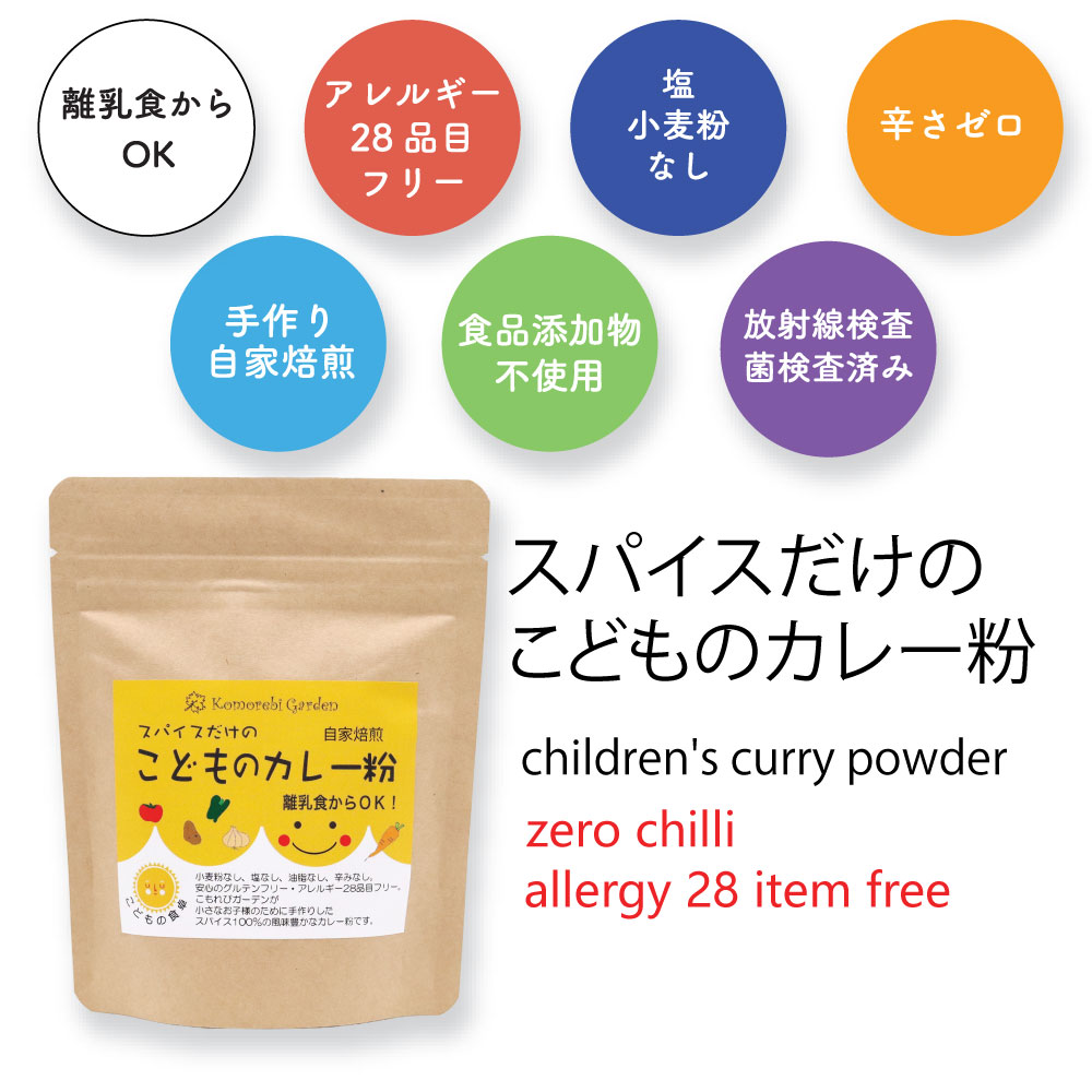 離乳食からOK! こもれびガーデン『こどものカレー粉』90g カレーパウダー 子供用カレー アレルギー28品目フリー グルテンフリー 食品添加物不使用 辛みなし。