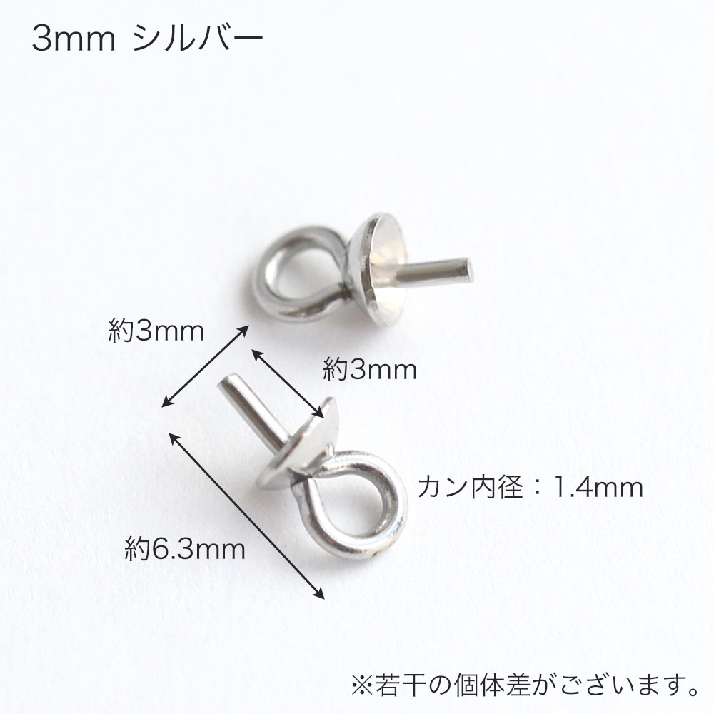 サージカルステンレス キャップ付き ヒートン 3mm シルバー 芯立 ハンドメイド アクセサリーパーツ 片穴パーツ用 金具 ハンドメイドパーツ 基礎金具