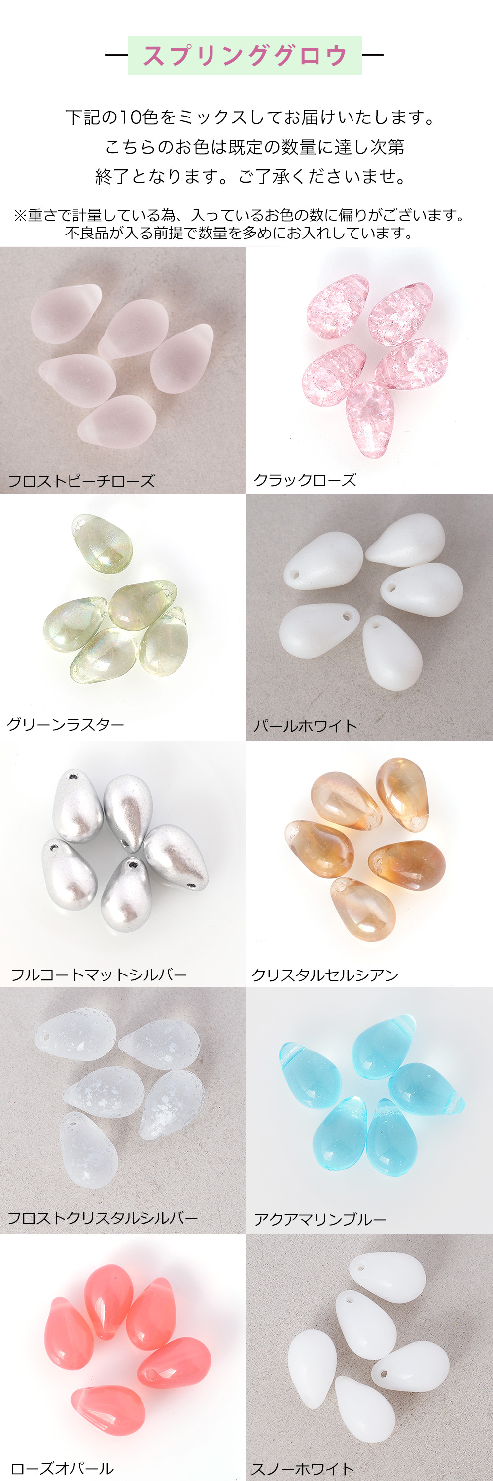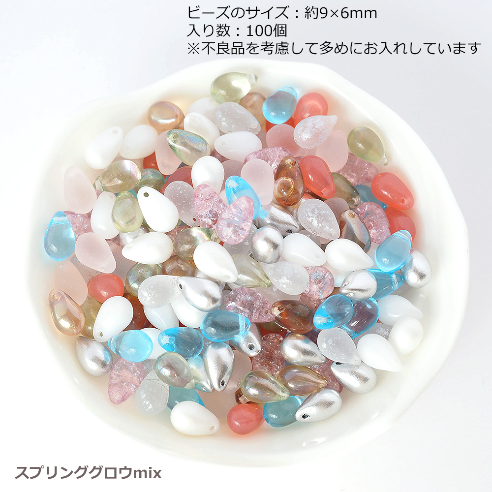 チェコビーズ ドロップ 9×6mm カラーアソート 大容量 約100個 メール便送料無料 チェコガラス ビーズ ハンドメイド パーツ 雫 シズク ティアドロップ 卸