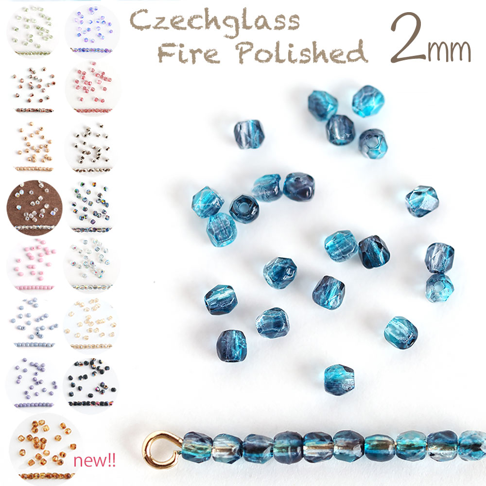 チェコビーズの定番ファイヤーポリッシュです。珍しい2mmサイズの単色販売です。アクセサリーのパーツや手芸材料として使い道の広いビーズです。
